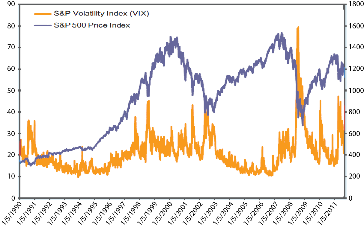 The above chart shows stock market growth vs. stock market volatility from January 1990 through December 31, 2011.
